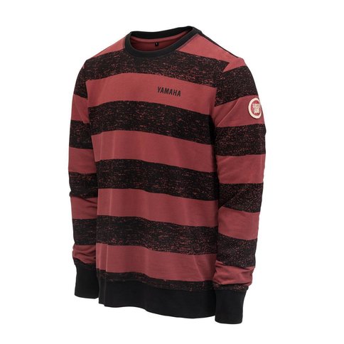 Cozy in a classic Yamaha style, this sweater showcases understated black Yamaha lettering on the front, complemented by a "Faster Sons" logo adorning the upper left sleeve.